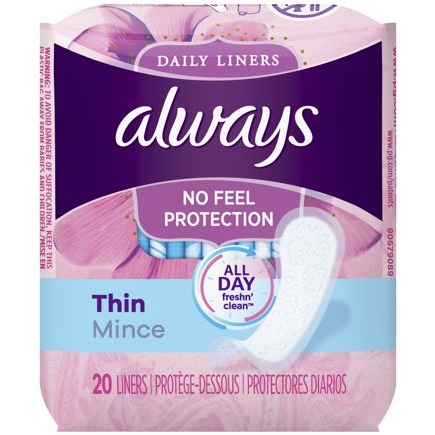 Always Thin Regular Daily Liners, Unscented, 20 C