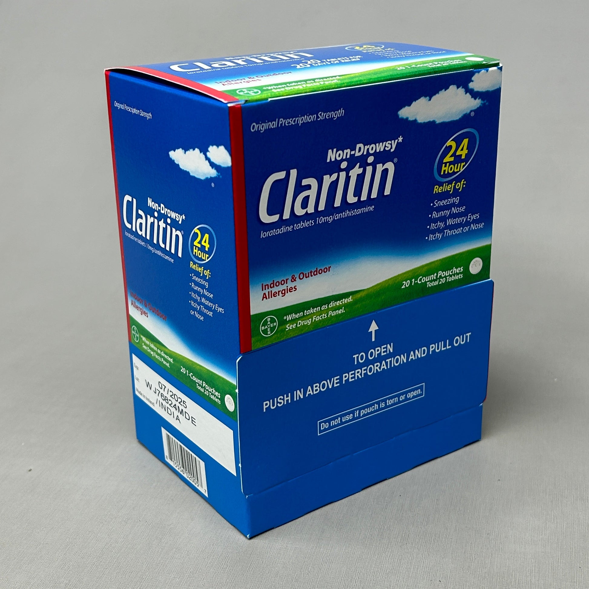CLARITIN (20 Tablets) Non-Drowsy Loratadine 24 Hour Allergies Exp 07/25