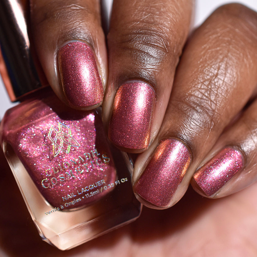 The vibrant energy of a fresh apple red, infused with shimmering golden peach notes, makes this polish a showstopper. This metallic shade is perfect for those who want to add a pop of color and a hint of sparkle to their ensemble.