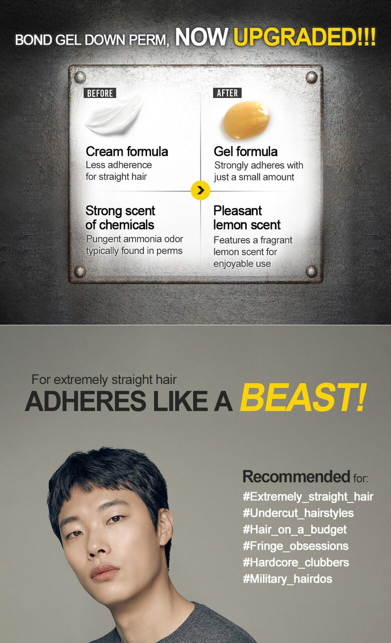 - A gel formula with better adherence than cream-type down perm, powerfully taming down any hair type at once - Featured ingredients