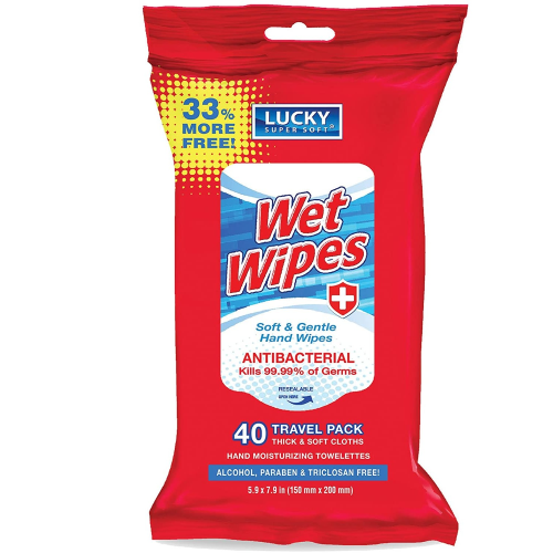 Lucky Super Soft Antibacterial Wet Wipes, 40 Count