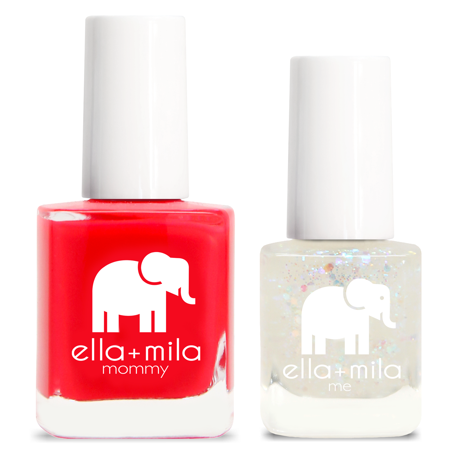Nail polish set with one "mommy" nail polish bottle (14.78 ml) and one "me" nail polish bottle (7 ml). ?Included in this set is one nail decoration sheet.