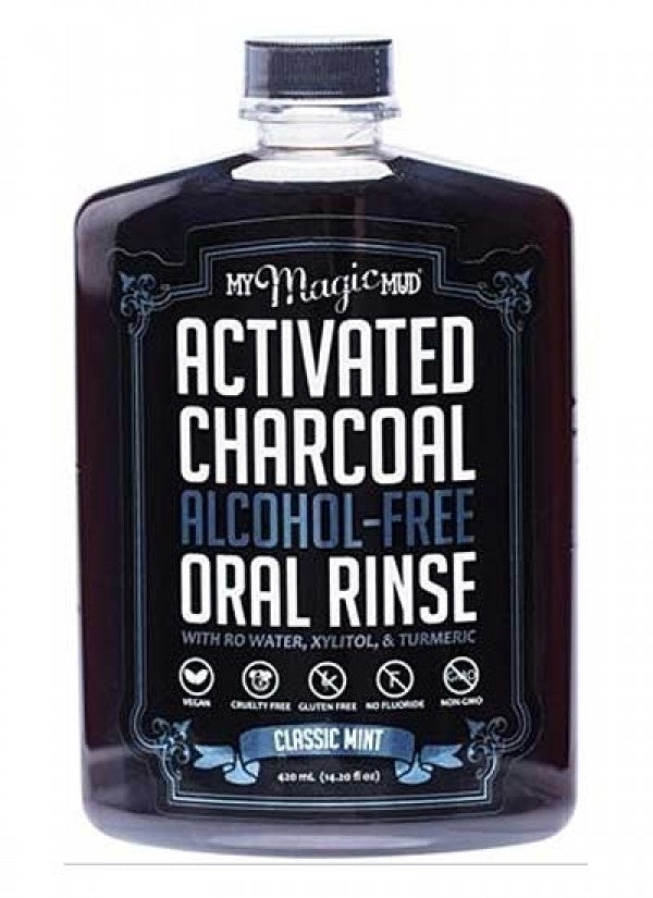 My Magic Mud's Activated Charcoal Oral Rinse is an alcohol free mouth wash with a unique set of ingredients we haven't seen in this type of product before. It is based on Reverse Osmosis Water combined with xylitol, aloe, bi-carb, minerals, turmeric, vitamin C, charcoal and natural flavours to give you a fresh feeling.