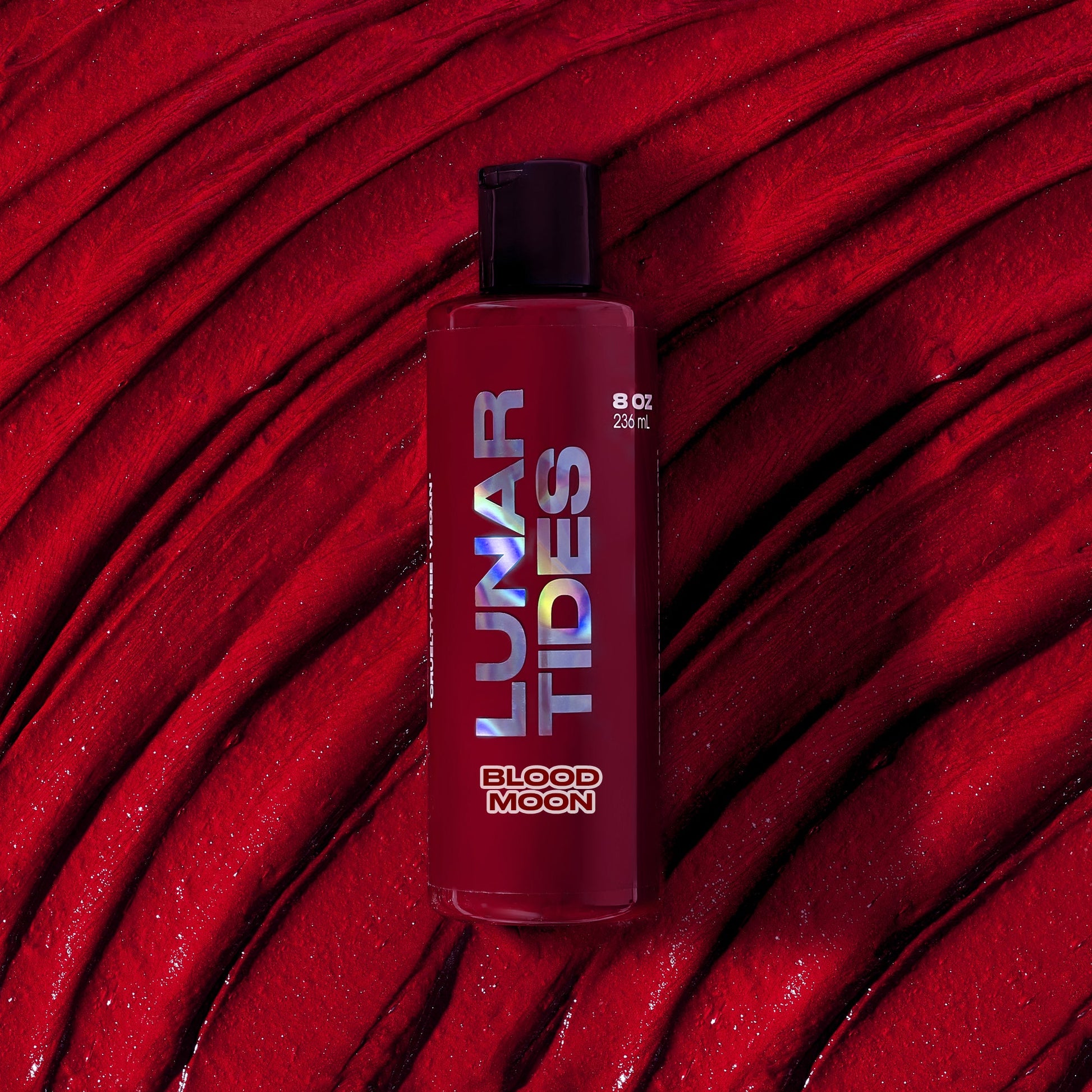 Blood Moon is a one-of-a-kind highly pigmented deep red dye with slight orange undertones